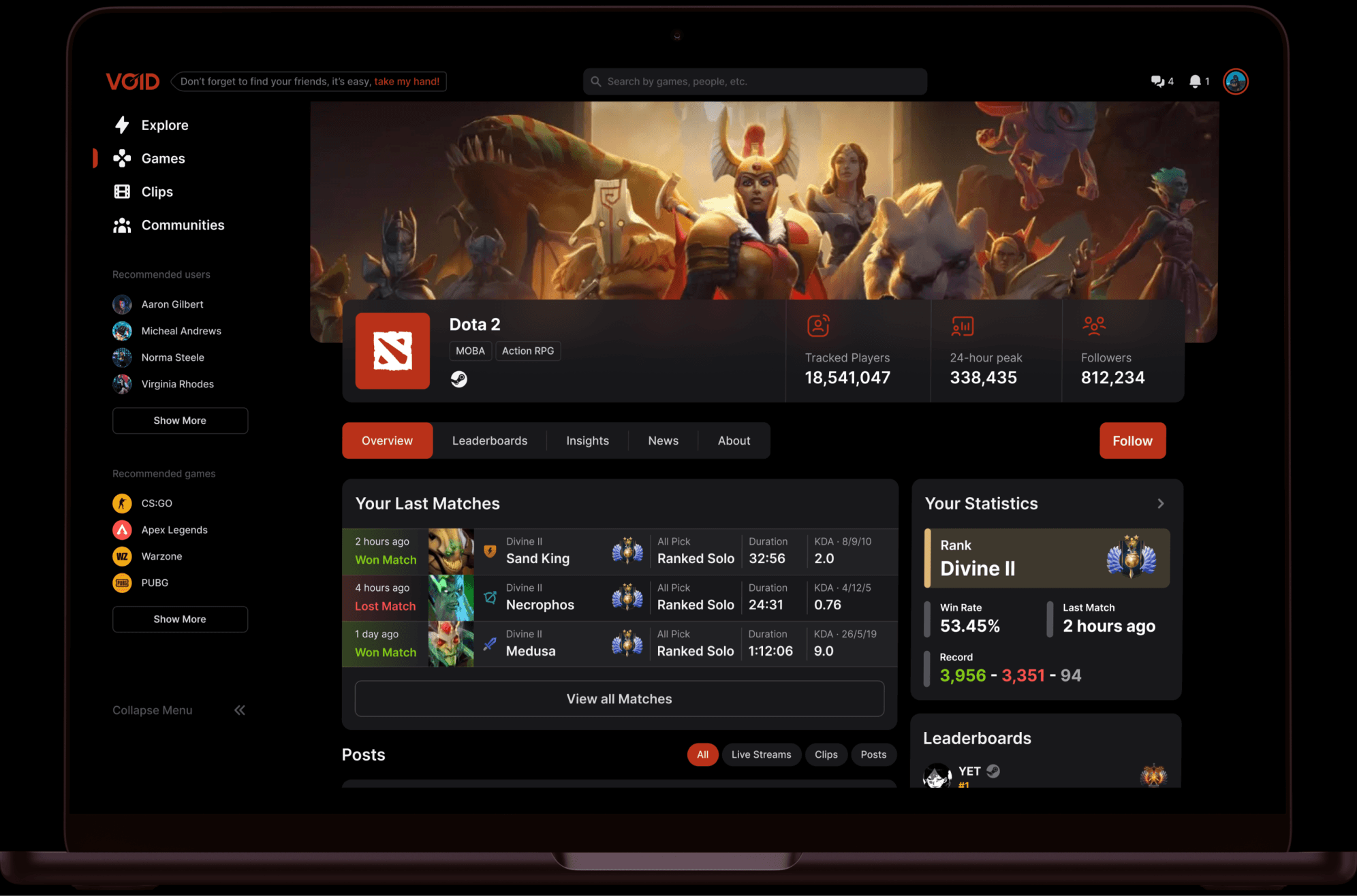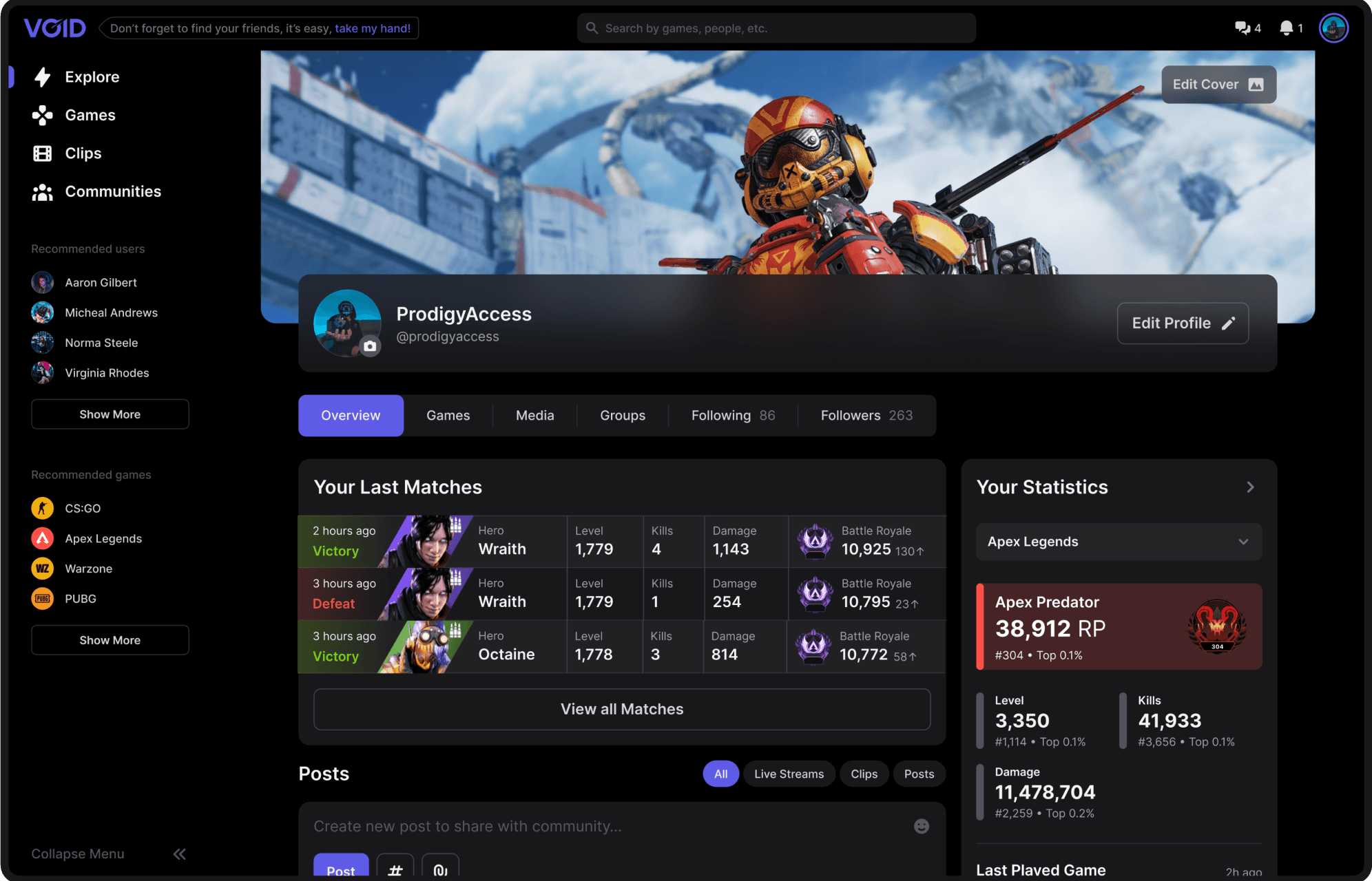 Void stands out with its dual-core features - fostering robust social connections among gamers and providing detailed individual stats for progress tracking. It's a sanctuary where gamers can celebrate their achievements, connect with like-minded individuals, and discover friends in familiar gaming landscapes.