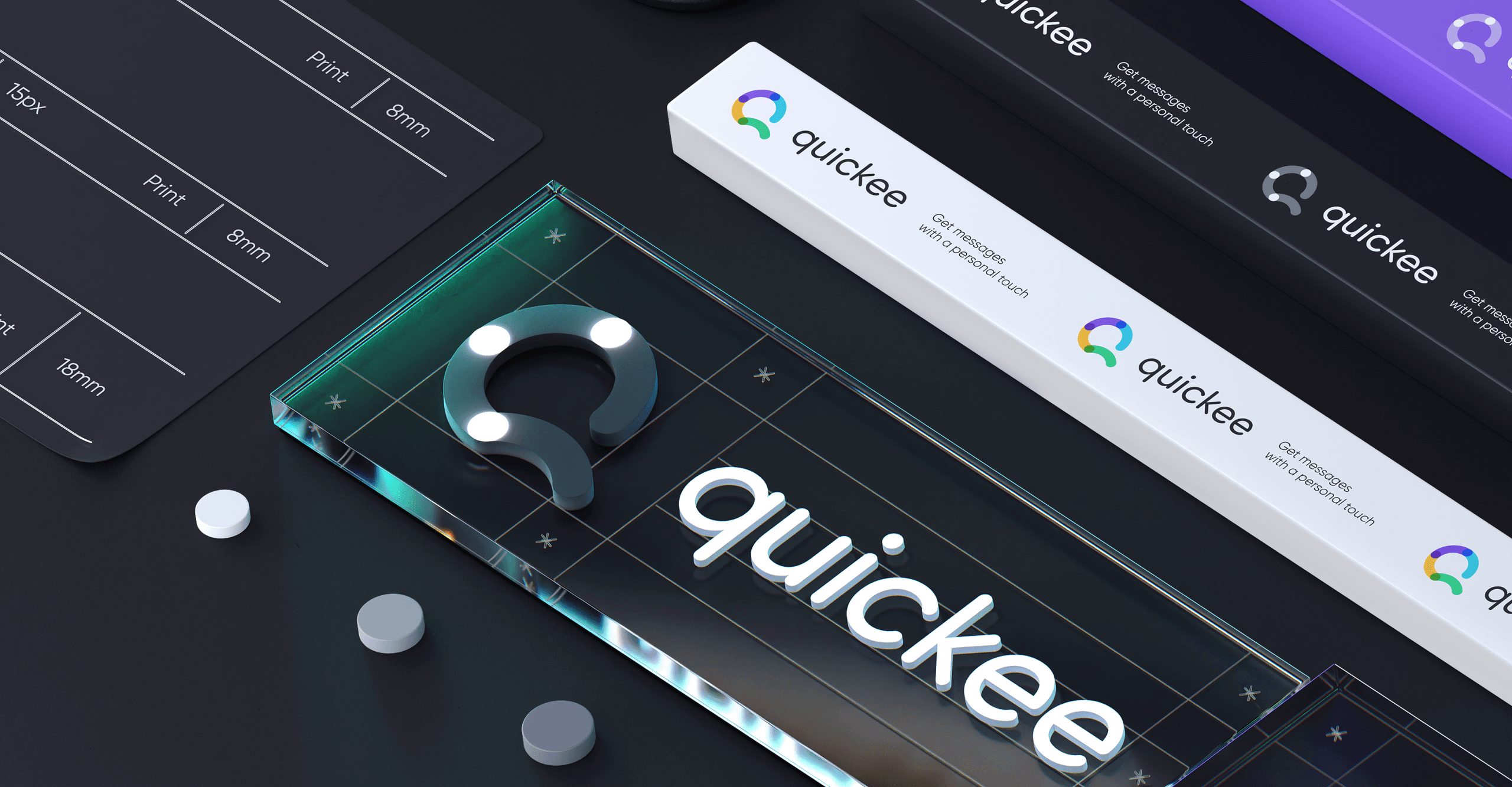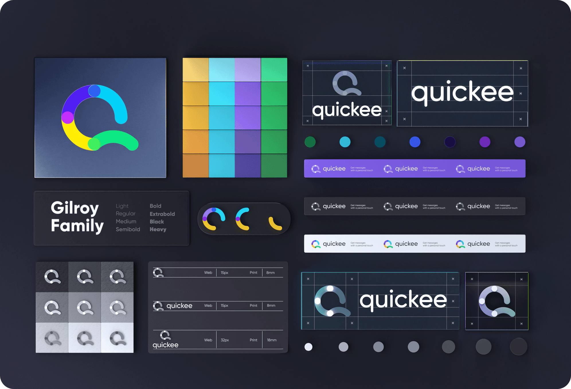 The final logo was based on the idea of circles becoming complete with every new addition. The more circles – the more connected the world around. Also, the incomplete circle translates into the Q glyph signifying the dynamic nature of the brand.