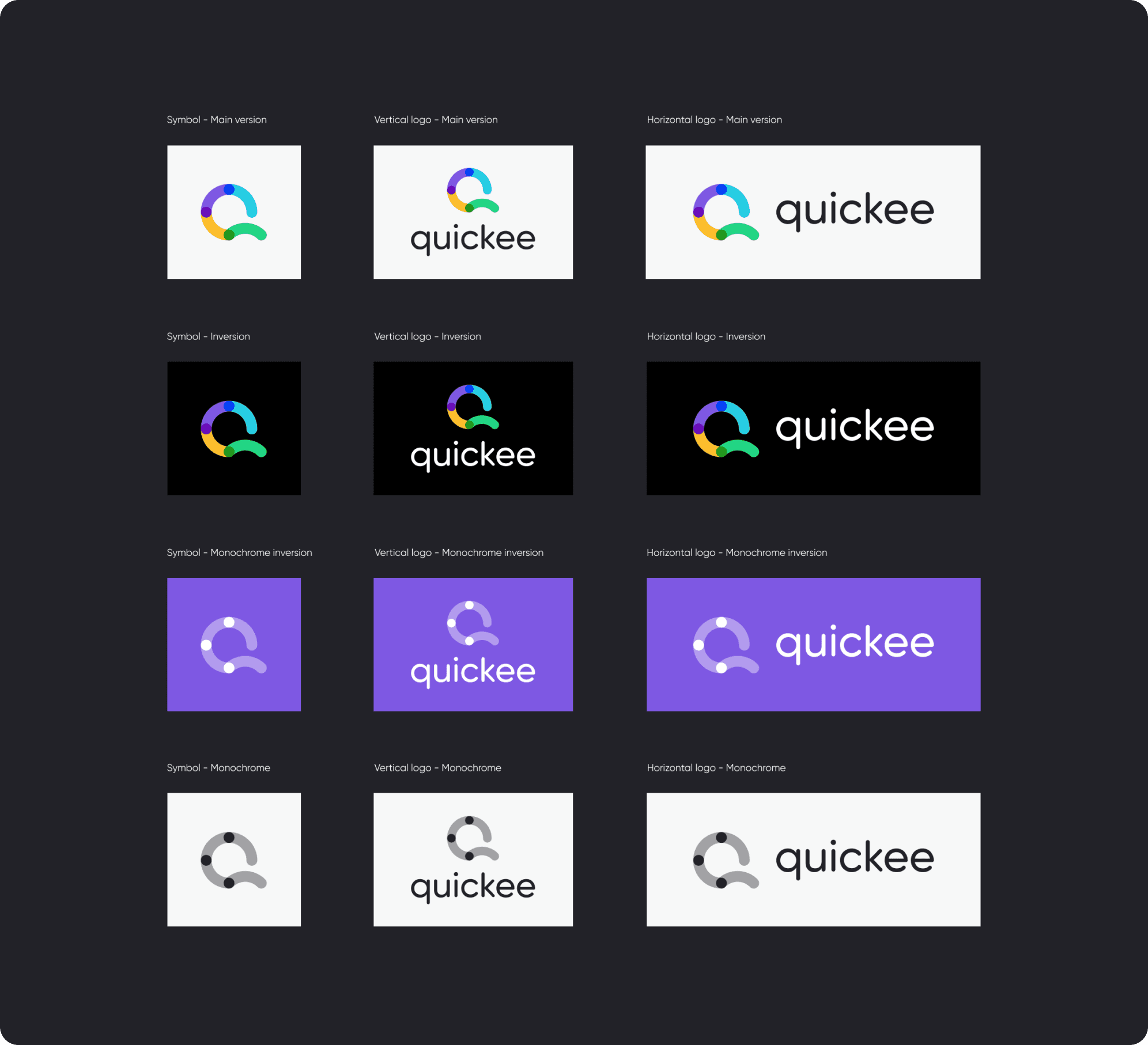 The base of any identity system is a versatile logo that everything else gravitates towards. In the Quickee case, the fun and friendly nature of the brand needed to be reflected in a dynamic and vivid shape.