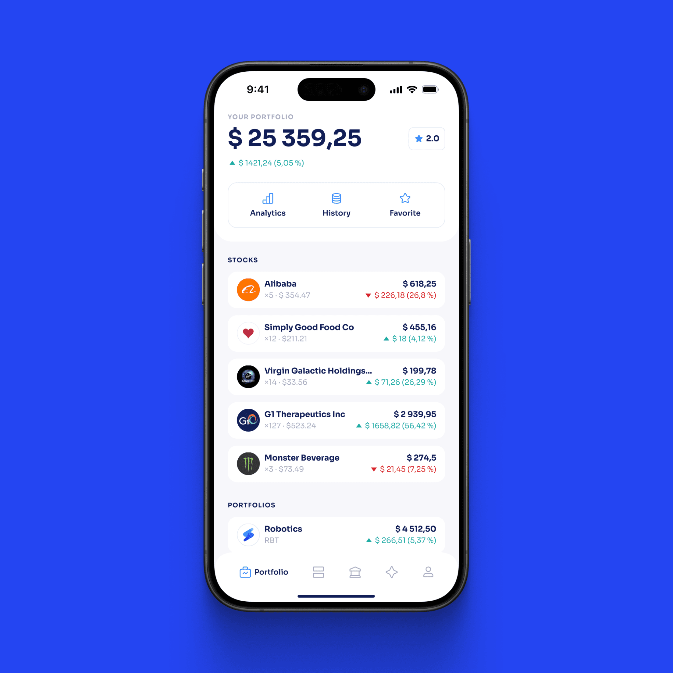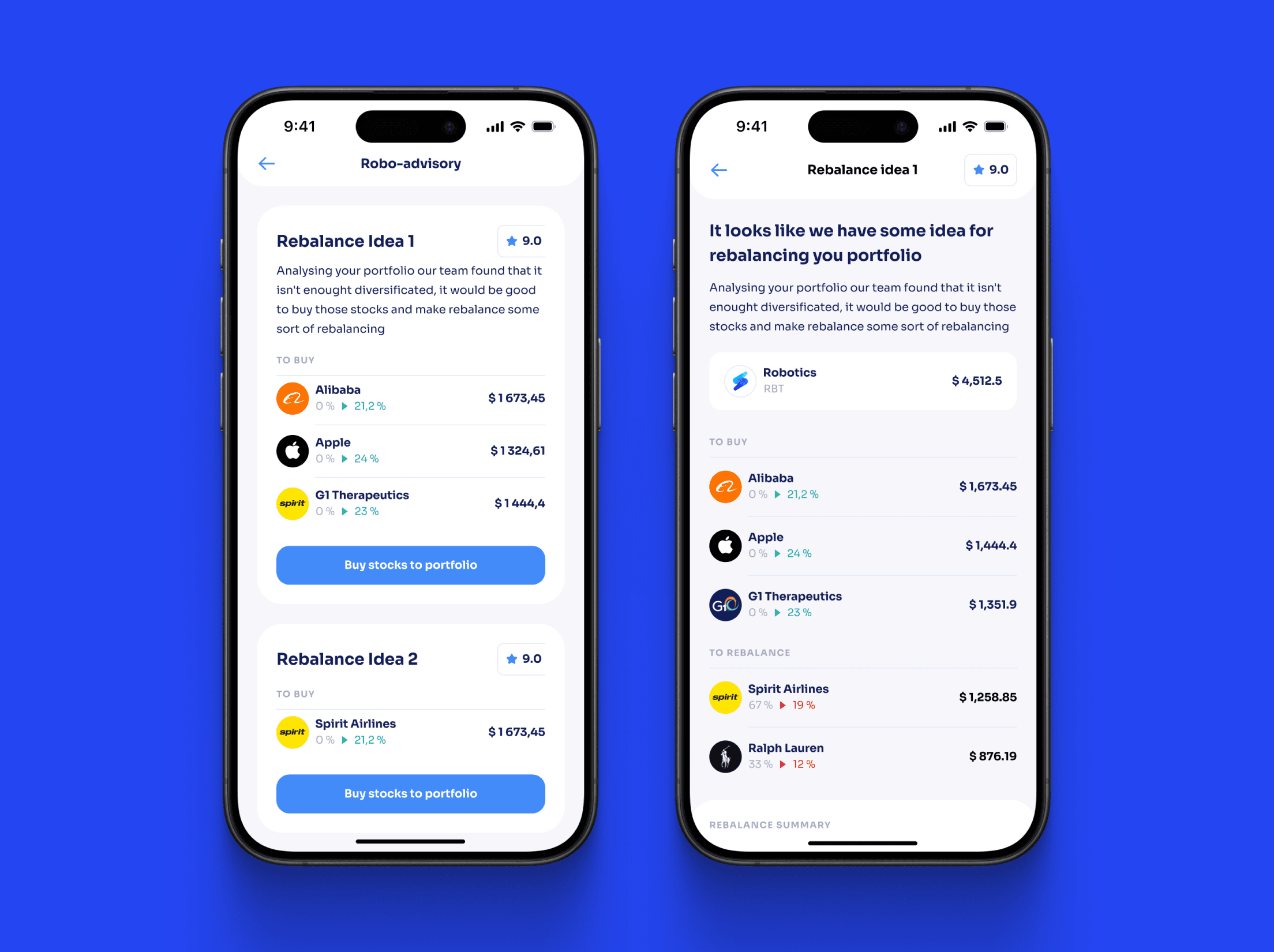 To facilitate an easy-to-grasp mobile app design, the app features numerous integrations and automations. They range from purchasing an entire portfolio to getting a robotic advisor that provides suggestions on trading actions.