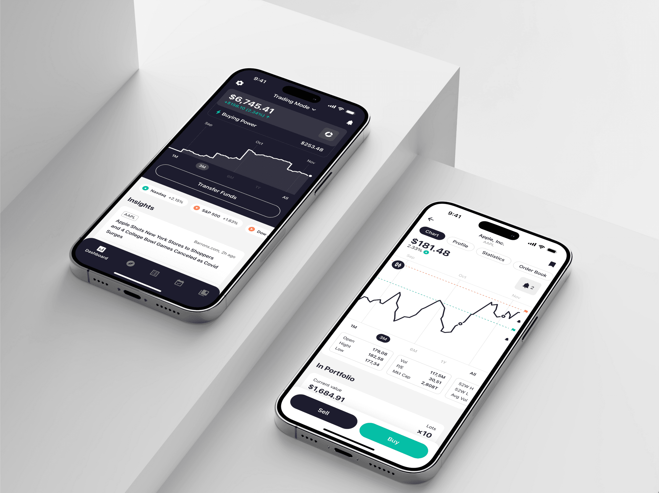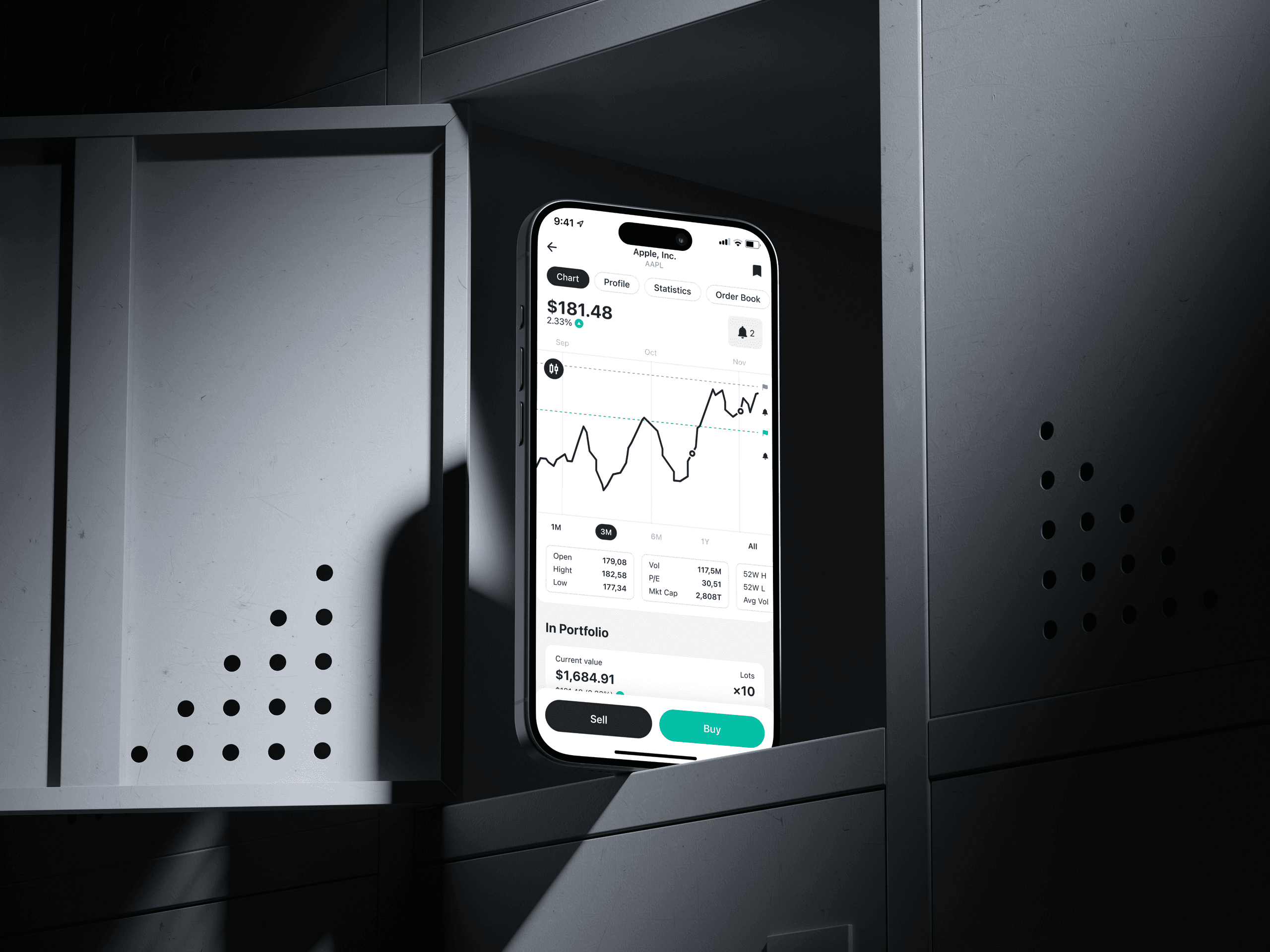 The portfolio, a critical feature in an investor's activities, is situated on the main interface showing balances, shares, and portfolios for easy access. We have prioritized the display of the account balance and the individual performance of the shares owned by the client.
