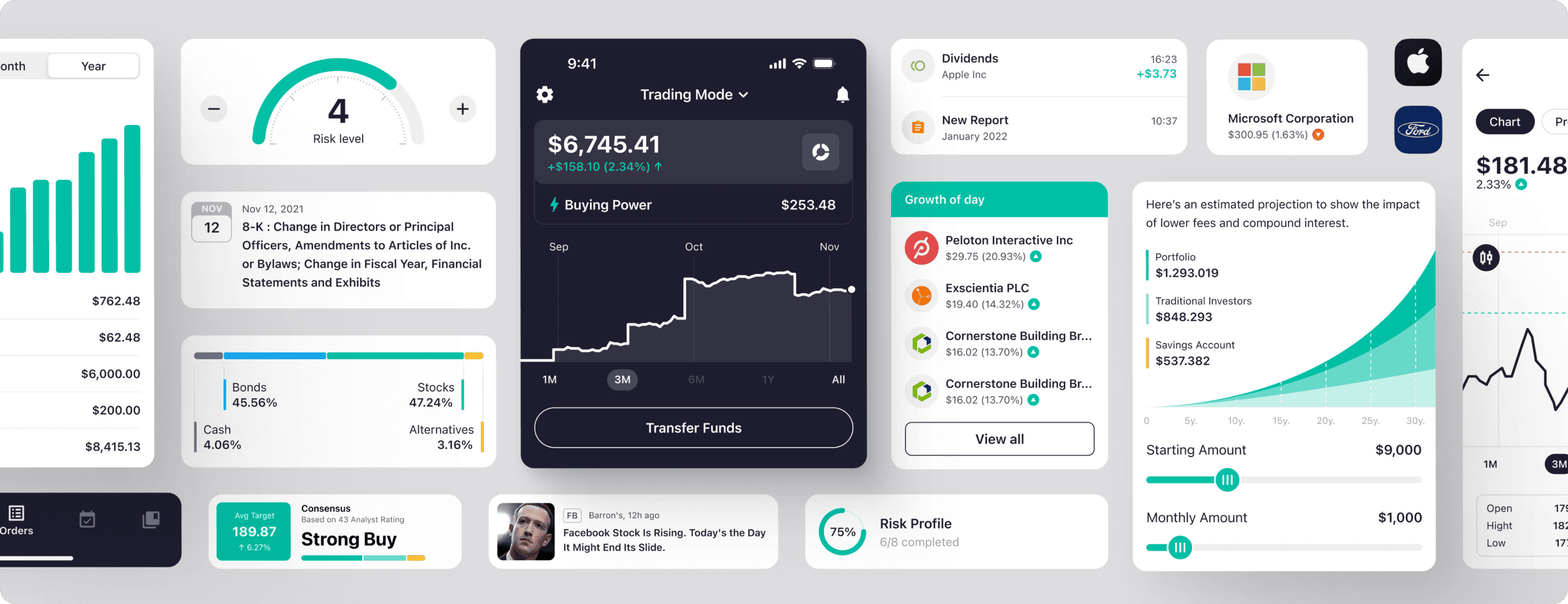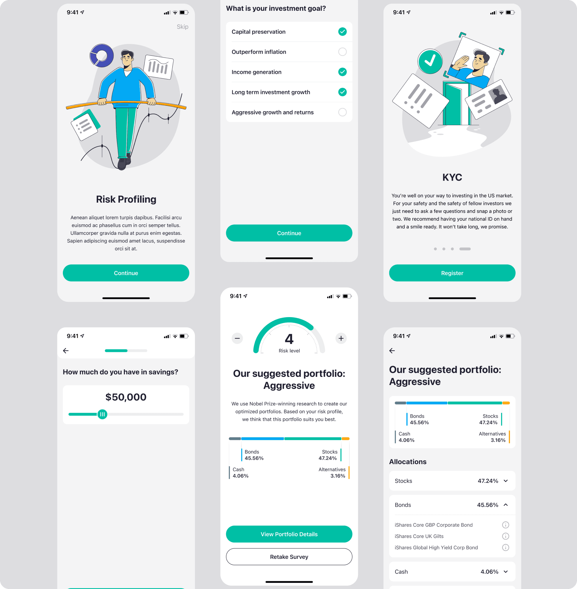 We developed comprehensive wireframes as a guide for the product, capturing all functional elements and features for each screen to streamline the design process. We initially targeted the Robo-advisor component, but as the project progressed, Trading mode was added at the client's request.